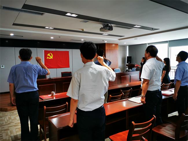 黨課后,全體與會黨員舉行了重溫入黨誓詞儀式。在公司第一黨支部支部書記陸海蕓同志的領(lǐng)誓下,黨員們面對鮮紅黨旗舉右拳,再次莊嚴宣誓。“我志愿加入中國共產(chǎn)黨……隨時準備為黨和人民犧牲一切,永不叛黨?!辩H鏘恢弘的誓詞,強烈震撼著在場的每一位黨員,一字一句,神圣而豪邁。黨員們又一次接受了黨性教育和黨性鍛煉,進一步堅定理想信念,體現(xiàn)了對黨的無限忠誠。
