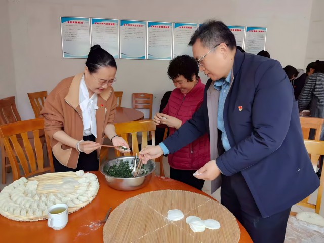 在北峪村幸福院,志愿服務(wù)隊(duì)一早攜帶新鮮食材和工具為村留守老人們包水餃,送去關(guān)愛(ài)和溫暖。大家分工合作,洗菜、切菜、調(diào)餡、搟皮,各個(gè)環(huán)節(jié)井然有序,黨員群眾和老人們圍坐在一起,一邊拉著家常,一邊交流著包餃子的經(jīng)驗(yàn)和技巧,現(xiàn)場(chǎng)歡聲笑語(yǔ),其樂(lè)融融。
