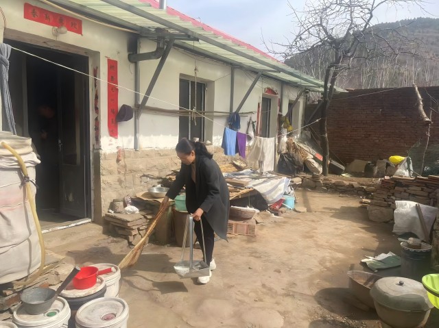 在北峪村高齡老人家中,志愿服務(wù)隊(duì)手持鐵鍬、掃帚、垃圾鉗等工具進(jìn)行衛(wèi)生清掃,大家分工明確,整理雜物、打掃地面、清理垃圾,共創(chuàng)干凈整潔村居環(huán)境?;顒?dòng)中,志愿者與老人們親切交談,貼心詢問(wèn)身體狀況和生活情況,耐心叮囑老人們要保重身體,時(shí)刻保持愉悅的心情。