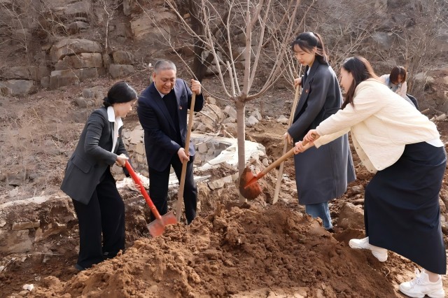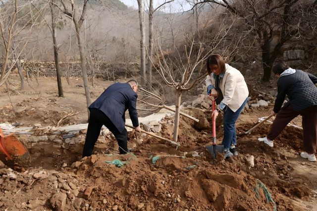 在北峪村青少年愛(ài)國(guó)主義教育基地,志愿服務(wù)隊(duì)以“植綠添彩 共建美麗鄉(xiāng)村”為主題開展了義務(wù)植樹。在第一書記的幫助指導(dǎo)下,兩兩一組,相互配合,揮鍬鏟土、扶苗填坑、培土澆水,干勁十足,現(xiàn)場(chǎng)呈現(xiàn)一派熱火朝天的勞動(dòng)景象。經(jīng)過(guò)辛勤勞作,栽種櫻花樹苗10余株,為鄉(xiāng)村增添一抹盎然新綠,用實(shí)際行動(dòng)踐行綠色發(fā)展理念,弘揚(yáng)植綠、愛(ài)綠、護(hù)綠的文明新風(fēng)尚。